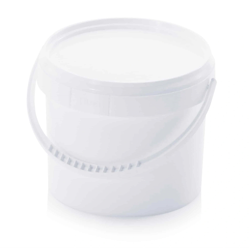 Hvid 0,95 L plastspand med låg. Spanden er lavet i materialet polypropylen og den er godkendt til fødevarer. Plastspanden har en indholdsbelastning på 1,43 kg. Plastikspandene er praktiske i køkken, kantine, på lager eller industri, til at opbevare forskellige fødevarer, væsker eller genstande. Alle spande kommer med låg. Bemærk at du ved nogle spande kan vælge mellem spande uden håndtag/bøjle, med plasthåndtag eller med metalbøjle med grebsrulle. Fandt du ikke et du søgte? Kontakt os på tlf. 71 99 50 10 eller via kontaktformularen. Vi sidder klar til at hjælpe.