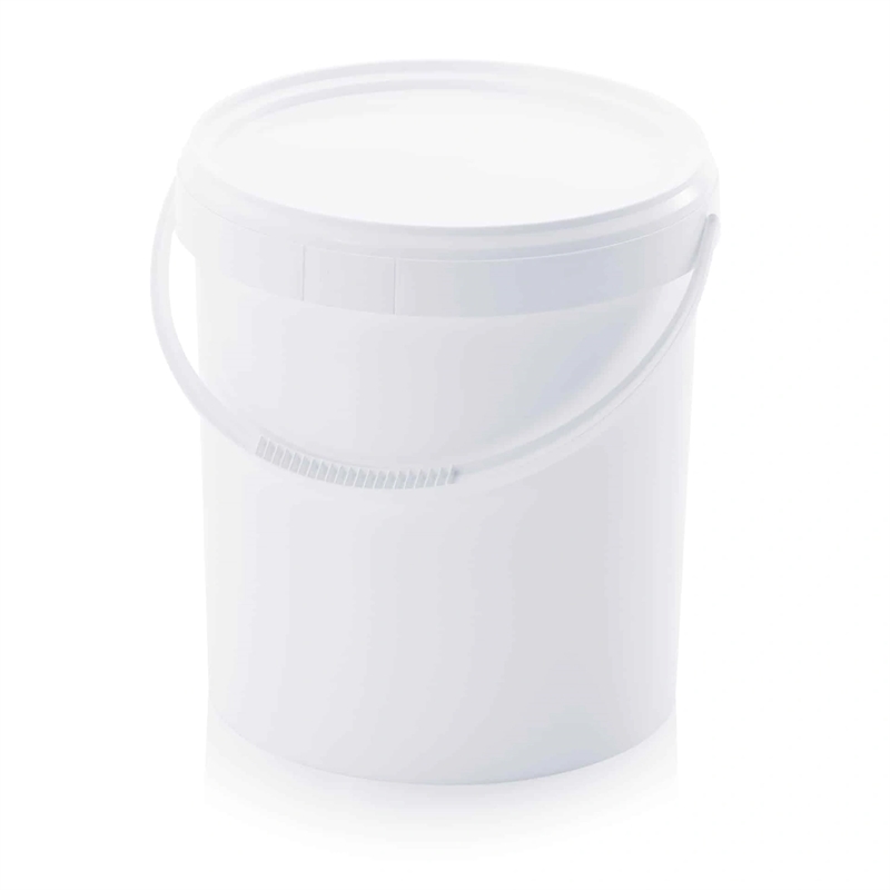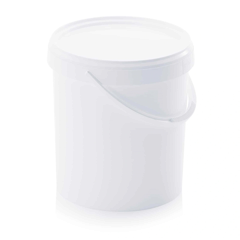 Hvid 20 L plastspand med låg. Spanden er lavet i materialet polypropylen og den er godkendt til fødevarer. Plastspanden har en indholdsbelastning på 30 kg. Plastikspandene er praktiske i køkken, kantine, på lager eller industri, til at opbevare forskellige fødevarer, væsker eller genstande. Alle spande kommer med låg. Bemærk at du ved nogle spande kan vælge mellem spande uden håndtag/bøjle, med plasthåndtag eller med metalbøjle med grebsrulle. Fandt du ikke et du søgte? Kontakt os på tlf. 71 99 50 10 eller via kontaktformularen. Vi sidder klar til at hjælpe.