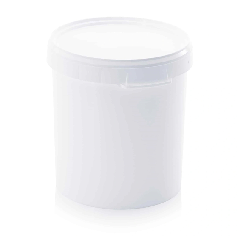 Hvid 30 L plastspand med låg. Spanden er lavet i materialet polypropylen og den er godkendt til fødevarer. Plastspanden har en indholdsbelastning på 45 kg. Plastikspandene er praktiske i køkken, kantine, på lager eller industri, til at opbevare forskellige fødevarer, væsker eller genstande. Alle spande kommer med låg. Bemærk at du ved nogle spande kan vælge mellem spande uden håndtag/bøjle, med plasthåndtag eller med metalbøjle med grebsrulle. Fandt du ikke et du søgte? Kontakt os på tlf. 71 99 50 10 eller via kontaktformularen. Vi sidder klar til at hjælpe.