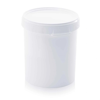 Hvid 32 L plastspand med låg. Spanden er lavet i materialet polypropylen og den er godkendt til fødevarer. Plastspanden har en indholdsbelastning på 48 kg. Plastikspandene er praktiske i køkken, kantine, på lager eller industri, til at opbevare forskellige fødevarer, væsker eller genstande. Alle spande kommer med låg. Bemærk at du ved nogle spande kan vælge mellem spande uden håndtag/bøjle, med plasthåndtag eller med metalbøjle med grebsrulle. Fandt du ikke et du søgte? Kontakt os på tlf. 71 99 50 10 eller via kontaktformularen. Vi sidder klar til at hjælpe.