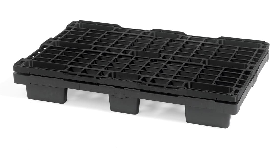Pladsbesparende plastpalle med lav egenvægt, men stor bæreevne. Pallens 9 fødder gør pallen både robust og meget stabil, også ved tung last. Løse meder kan nemt klipses på pallens 9 fødder ved behov. Pallen er egnet til transport, udstilling af produkter i detailhandlen, som eksportpalle eller i fødevare- og produktionsmåljøer. De 9 robuste fødder gør det nemt at stable pallen og gør pallen meget pladsbesparende. Plastpallen er støbt i slagfast HDPE plast som gør den ekstrem robust og stabil. Vælg om plastpallen skal leveres med eller uden kant.