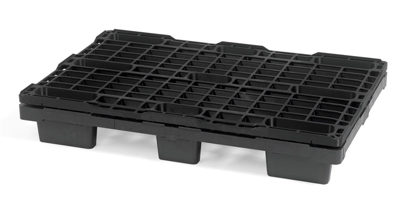 800 x 1200 x 125 mm. Pladsbesparende plastpalle med lav egenvægt, men stor bæreevne.