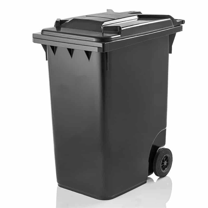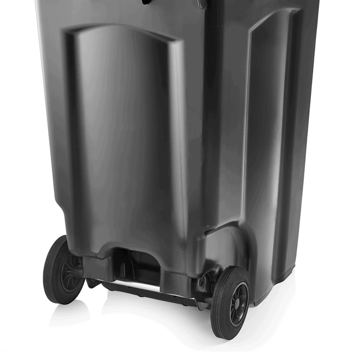 Affaldscontainer til 360 L, har en solid og holdbar konstruktion, hvor de mest udsatte steder er ekstra forstærket for at sikre en lang levetid. Affaldscontaineren er produceret i robust HDPE plast, som er genanvendeligt. Beholder eller låg kan præges med logo eller tryk efter ønske. Affaldscontaineren fås i flere farver.