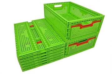 Mange af disse kasser kan foldes, så de fylder mindst muligt når de ikke er i brug. Derudover kan de stables, så du kan transportere og opbevare mange plastkasser af gangen. Alle vores klapkasser, plastkasser og foldekasser til frugt og grønt er produceret i fødevaregodkendt PE plast.