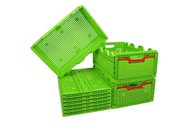 Mange af disse kasser kan foldes, så de fylder mindst muligt når de ikke er i brug. Derudover kan de stables, så du kan transportere og opbevare mange plastkasser af gangen. Alle vores klapkasser, plastkasser og foldekasser til frugt og grønt er produceret i fødevaregodkendt PE plast.