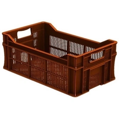 Robust og slagfast stabelbar grøntsagskasse og frugtkasse i fødevaregodkendt PE plast. Grøntsagskassens bundmål er 500x300 og har en højde på 180 mm. Grøntsagskassen i plast er udført i frost og varme bestandigt materiale (-20 til +80 grader) og kan leveres i andre farver ved kun 250 stk.