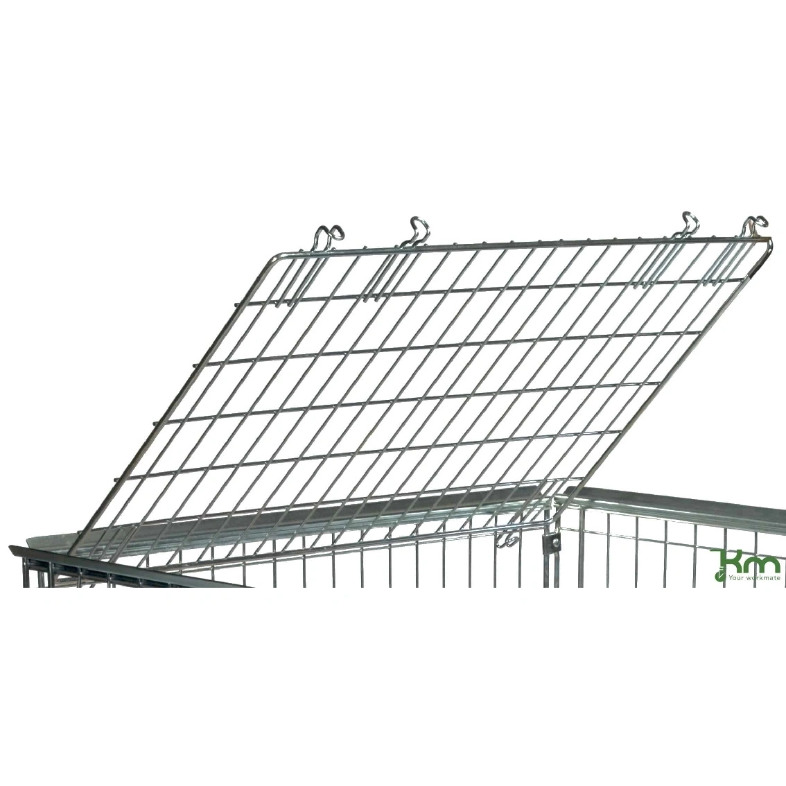Gitterlåge, der passer til pallegitre til EUR paller; KM080040, KM080062, KM080085, KM080100,KM080062A1 og KM080085A1. Gitterlågen er praktisk hvis du ønsker at låse noget inde i pallen, samt hvis du ønsker at stable flere paller.