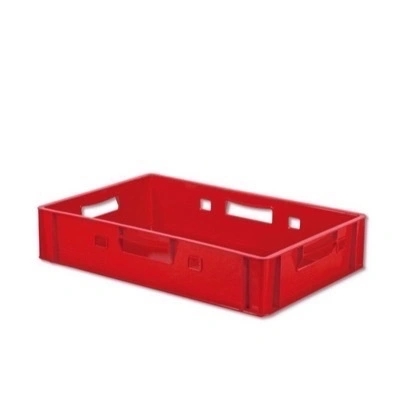 Klapkasser og kødkasser med en lav højde f.eks. 50-80 mm, men stort bundmål, kan være praktisk hvis man vil transportere halvfabrikerede fødevarer i E2 plastkasser, som f.eks. bake-off, dej, chokolade, kager eller lign., som skal undgå tryk og påvirkning, men som ikke fylder meget i højden. Da både klapkasser og kødkasser er stabile og robuste E2 plastkasser, er de oplagte hvis man vil undgå påvirkning af indholdet. kødkasser er samtidigt lette rengøre efter brug, så du let anvende dem til forskellige typer fødevarer. Klapkasser og kødkasser kan også benyttes som frugtkasser og grøntsagskasser Vi har et udvalg af frugtkasser og grøntsagskasser, som kommer med ventilerende sider, som er optimalt i forhold til transport af frugt og grønt.