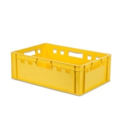 Robust og slagfast stabelbar E2 plastkasse i fødevaregodkendt PE plast. E2 plastikkassen passer til målene på en EURO palle. Plastkassens bundmål er 600x400 og har en højde på 200 mm. E2 Plastkassen er udført i frost og varme bestandigt materiale (-20 til +80 grader) og kan leveres i andre farver ved kun 250 stk. Sælges i kolli a 44 stk.