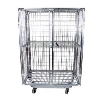 Tyverisikret rullebur med stålforstærket bund i HDPE plast med 4 sider og 50x50 mm tråd åbning. Rulleburet er monteret med frostsikre 108 mm polypropylen hjul samt 2 faste og 2 drejegafler.