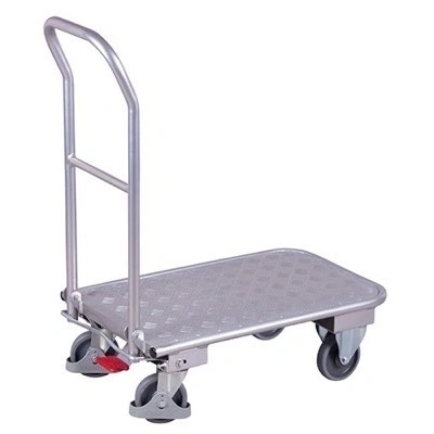 Praktisk og robust Kompakt vogn 995x600x990 (BxDxH) monteret med støjsvage og afsmitningsfrie gummihjul. Vognen kan klappes sammen. Vognen er lavet i aluminium, med en rillet aluminiumsplade. Kompakt vognen har en maks belastning på 150 kg.