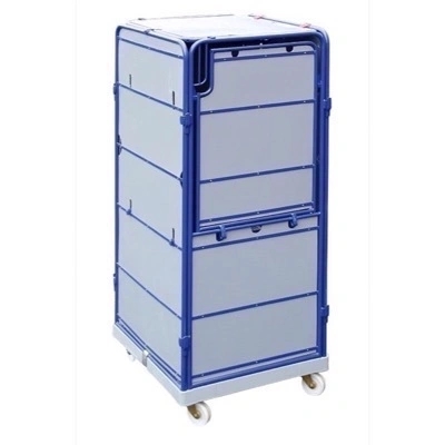 Tyverisikret rullebur med stålforstærket bund i HDPE plast med 4 sider og 50x50 mm tråd åbning. Rulleburet er monteret med frostsikre 108 mm polypropylen hjul samt 2 faste og 2 drejegafler.