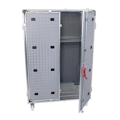 Stort og lukket tyverisikret rullebur og IT-sikkerhedsbur til effektiv sikring af IT. Det låsbar sikkerhedsbur sikrer effektivt IT udstyr under opbevaring og transport og bidrager til opretholdelsen af virksomheden GDPR forpligtelser.