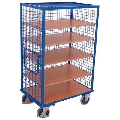 Praktisk og robust Plukkevogn 1115x730x1810 (BxDxH) monteret med støjsvage og afsmitningsfrie gummihjul. Vognen er lavet i stål med en kraftig og slagfast pulverlakering. Plukkevognen har en maks belastning på 500 kg.
