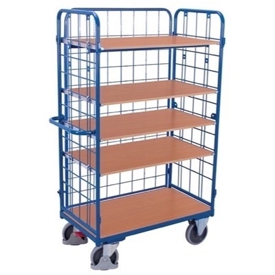 Praktisk og robust Plukkevogn 1190x625x1820 (BxDxH) monteret med støjsvage og afsmitningsfrie gummihjul. Vognen er lavet i stål med en kraftig og slagfast pulverlakering. Plukkevognen har en maks belastning på 500 kg.