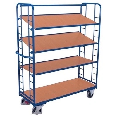 Praktisk og robust Plukkevogn 1510x550x1815 (BxDxH) monteret med støjsvage og afsmitningsfrie gummihjul. Vognen er lavet i stål med en kraftig og slagfast pulverlakering. Plukkevognen har en maks belastning på 250 kg.