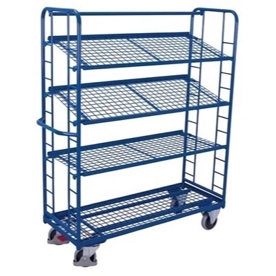 Praktisk og robust Plukkevogn 1510x550x1815 (BxDxH) monteret med støjsvage og afsmitningsfrie gummihjul. Vognen er lavet i stål med en kraftig og slagfast pulverlakering. Plukkevognen har en maks belastning på 250 kg.