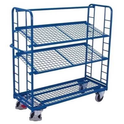 Praktisk og robust Plukkevogn 1760x650x1575 (BxDxH) monteret med støjsvage og afsmitningsfrie gummihjul. Vognen er lavet i stål med en kraftig og slagfast pulverlakering. Plukkevognen har en maks belastning på 400 kg.