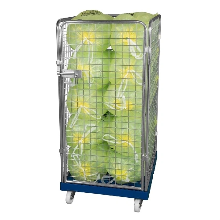 Transportbur med lukket bund, 3 sider og dør. transportburts højde er 1550 mm. Transportburets paneler har en åbning på kun 50x50 mm hvilket gør buret egent til transport af mindre genstande. Transportburets lukkede bund bevirker at buret er egnet som vaskebur, bur til affald eller som transportbur til vaskesække mv. Transportburet er monteret med 108 mm plasthjul. Hylde der passer til transportburet har varenummer: ZBD725ADLC004