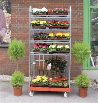 Produkt:  Rullecontainer til butik - 3 hylder m. 25 mm hyldekant - vælg farve bund, 724x815x1800 mm