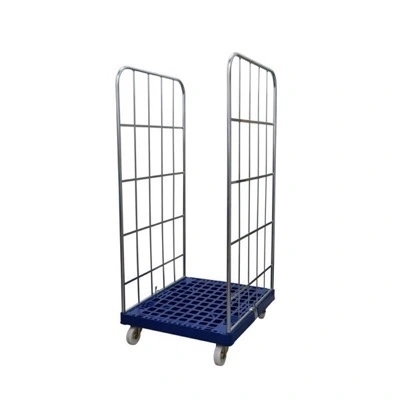 Transportbur med stålforstærket bund i HDPE plast med 2 sider, 4 hyldeplaceringer. Transportburet er monteret med frostsikre 108 mm polypropylen hjul samt 2 faste og 2 drejegafler. Robust transportbur til effektiv og alsidig transport.