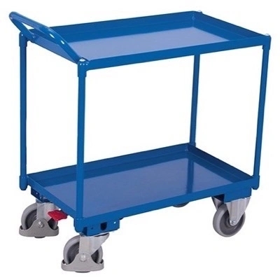 Bordvogn med 2 hylder lavet i stål med pulverlakering. Rullevognen har ydre mål 1015x500x1025 mm (BxDxH). Rullevognen har 2 faste hjul og 2 drejehjul og EasySTOP bremse, samt håndtag i stål.