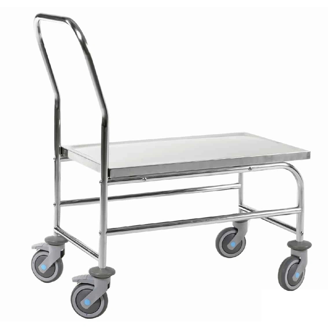 Rustfri pladevogn, 880x500x965, lavet i rustfrit stål. Platformsvognen har 4 drejbare 2 med bremse. Vognen er praktisk til at transportere gods og varer på værksted, lager eller industri. Platformsvognen har en maks på belastning på 100 kg.