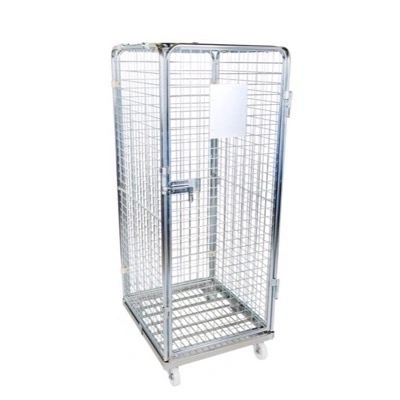 Tyverisikret rullebur med stålforstærket bund i HDPE plast med 4 sider og 50x50 mm tråd åbning. Rulleburet er monteret med frostsikre 108 mm polypropylen hjul samt 2 faste og 2 drejegafler.