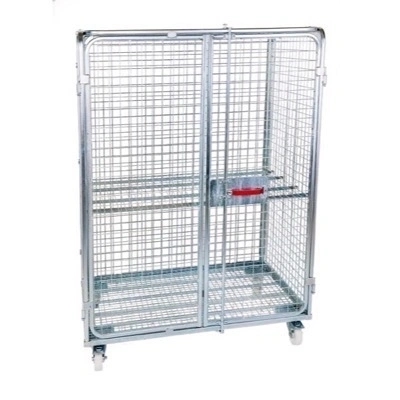 Tyverisikret rullebur med stålforstærket bund i HDPE plast med 4 sider og 50x50 mm tråd åbning. Rulleburet er monteret med frostsikre 108 mm polypropylen hjul samt 2 faste og 2 drejegafler.