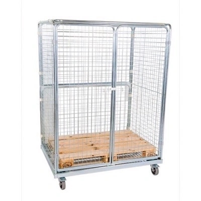 Stort tyverisikret rullebur og sikkerhedsbur til effektiv sikring af gods på europalle. Det låsbar sikkerhedsbur sikrer effektivt beskyttelse af gods pakket på europaller under opbevaring og transport.