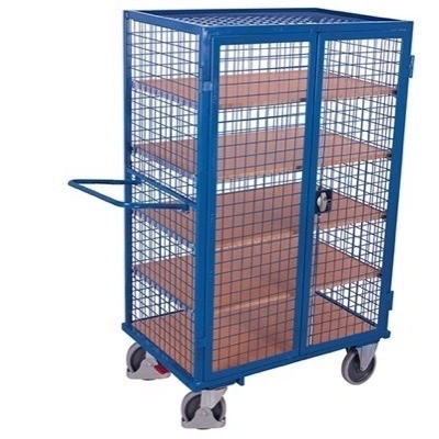 Praktisk og robust sikkerhedsvogn 1315x830x1810 mm (BxDxH) monteret med støjsvage og afsmitningsfrie gummihjul. Vognen er lavet i stål med en kraftig og slagfast pulverlakering. Sikkerhedsvognen har en maks belastning på 500 kg.