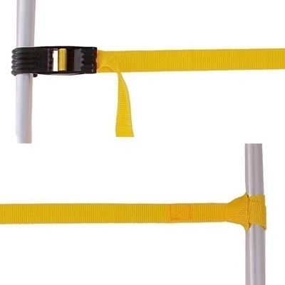 Justerbar tekstilstrop med plastkrog til montering på rullebure, transportbure, rullecontainere og transport containere. Stroppen er produceret i hårdfør og slidstærk polyester som siker lang levetid og sikker anvendelse.