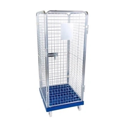 Robust gitterbur med 4 sider og plastbund i valgfri farve. Gitterbur, også kaldet gittercontainer med plastbund er både hygiejnisk holdbar. Plastbunden på trådburet er forstærket med 4 stålspær som sikrer belastning på op til 450 kg i hver rullecontainer.
