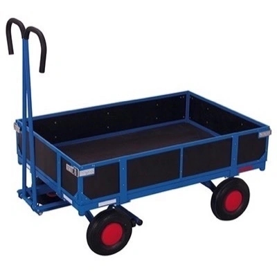 Praktisk og robust Trækvogn 1335x830x1195 (BxDxH) monteret med støjsvage og afsmitningsfrie gummihjul. Vognen er lavet i stål med en kraftig og slagfast pulverlakering.
