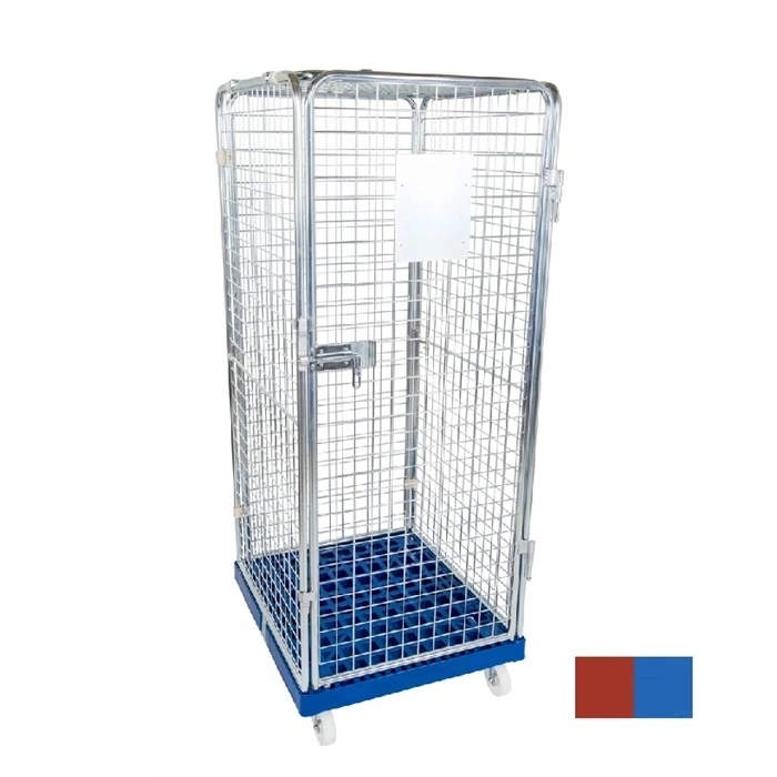 Transportbur med blå plastbund og 3 sider samt front dør. Burets indre mål på 670x810 mm er specielt velegnet til opbevaring og transport af eurokasser og E2 da 2 kasser på 600x400 mm kan stables ved siden af hinanden. Transportburet måler 682x815 mm. Transportburet er monteret med 108 mm plasthjul. Hylde der passer til transportburet har varenummer: ZBD682ADLC008