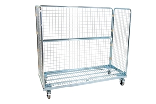 Transportbur med 3 sider som måler 620x1500 mm med en højde på 1400 mm og sideåbninger på 50x50 mm. Transportburet kan monteres med løse hylder og kan bruges som lagerreol, hyldevogn, plukkevogn og gitterbur.Transportburet er monteret med 125 mm grå gummihjul, hvoraf 2 er med bremse. Tilhørende hylde med varenummer: ZD6201500MRKFC