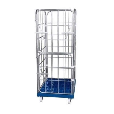 Robust gitterbur med 4 sider og plastbund i valgfri farve. Gitterbur, også kaldet gittercontainer med plastbund er både hygiejnisk holdbar. Plastbunden på trådburet er forstærket med 4 stålspær som sikrer belastning på op til 450 kg i hver rullecontainer.