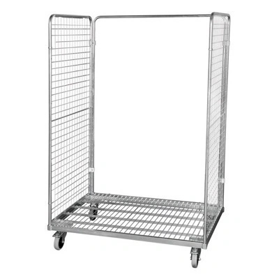 Transportbur medåen bund i galvaniseret stål med 2 sider og 100x50 mm tråd åbning for fleksibel placering af hylder. Inklusiv stabiliseringsstang. Transportburet er monteret med frostsikre 108 mm polypropylen hjul samt 2 faste og 2 drejegafler. Robust transportbur til effektiv og alsidig transport.