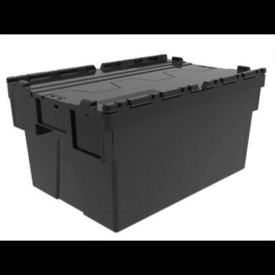 Distributionskasse i hårdfør og slagfast PP plast med fastmonteret 2-delt låg. Distributionskassen kan plomberes og er velegnet til sikring af værdier under transport.